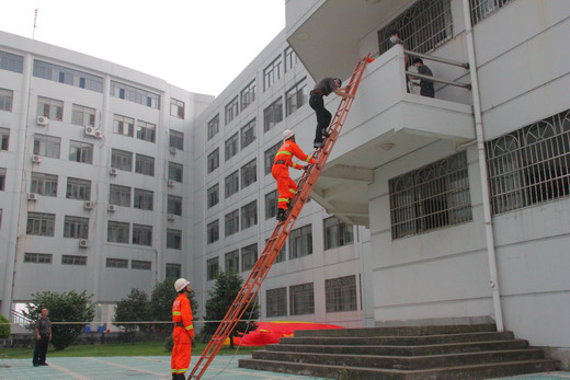 | 9月15日下午14时30分左右,一股刺鼻的烟雾从学校博学楼三楼滚涌而出,火势迅速扩大,楼内多名学生被困。学校、消防部门迅速展开救援。臂登高车、气垫和软梯等设备一一到位,不到10分钟,数百名正在上课被困的师生成功脱险……这紧急的场面是我校正在开展2010级全体新生消防演习活动。