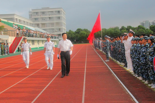 最后,谢一风院长在开学典礼上发表了热情洋溢的讲话。谢院长首先代表学校向承担此次军训任务的东海舰队领导和全体教官,表示崇高的敬意和诚挚的感谢!向各位参训的新同学表示热烈祝贺!谢院长说,通过军训,同学们对生活有了更多的体验、对军人有了更多的理解、对未来有了更多的准备!军训让你们学会了坚定、坚持、坚强,也使你们获得了新的人生境界,这些都将会是你们人生中宝贵的财富。在今后的大学生活中,同学们要继续保持军训中养成的良好习惯,继续弘扬军训中形成的集体主义精神,继续发扬军训中增强的责任感!学会为人、学会学习、学会创新。希望大家一定要珍惜这次军训经历,铭记“厚德、进业、明智、笃行”的校训,以弘扬和传承宁波商帮精神为已任,勤于思考,刻苦钻研,营造优良的学风和校风,努力把自己练就成为一个具有较扎实的理论基础、过硬的专业技能、良好的职业素养和强烈的创新创业意识的现代商帮人才,为自己的精彩人生打下坚实基础,也为学校的建设发展贡献力量。