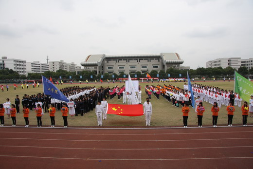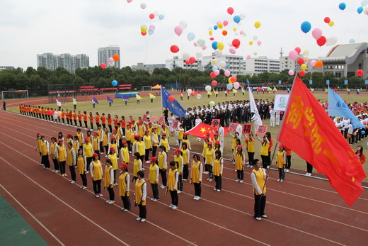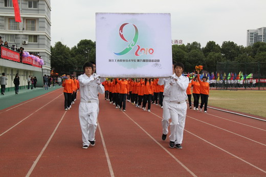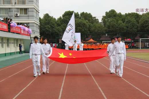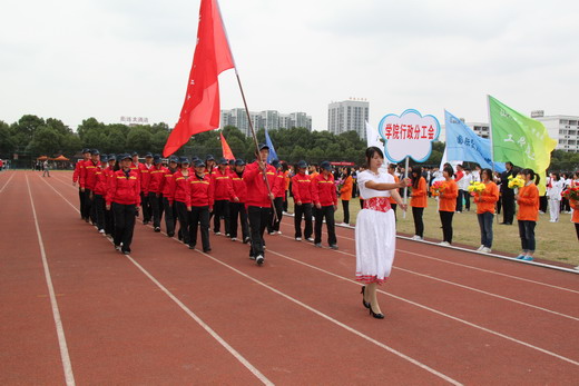 伴随雄壮激昂的《运动员进行曲》,鲜花队、彩球队、彩旗队和裁判员、学生、教工运动员代表队高喊洪亮的口号,迈着整齐而又矫健的步伐,从东区入场,向主席台前走过,展现出了浙江工商职院人蓬勃向上的精神面貌。入场式结束后,在庄严的《国歌》声中举行了升旗仪式,五星红旗冉冉升起,全场一齐向国旗行注目礼。