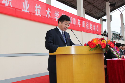 副院长姚奇富致开幕词,他说体育工作是国家教育方针的重要组成部分,也是学校精神文明建设的重要内容。发展体育运动,举办田径运动会,对于提高全校师生员工的整体素质,推动学校各项工作的开展,都有着十分重要的意义。它既是强身健体,提高广大师生员工生活质量的需要,又是培养德、智、体、美全面发展的社会主义合格人才、全面建设小康社会的需要,也是推动和促进学校改革、发展和建设的需要。希望在未来几天紧张的比赛中,全体运动员能以饱满的热情,昂扬的斗志,勇于拼搏的精神投身到各项竞赛活动中去。在运动场上比思想、比作风、比纪律、比技术,赛出风格、赛出友谊、赛出团结、赛出成绩,充分展现出我们工商师生的精神风貌。也希望全体裁判员和工作人员,要严格按规程操作,做到公平、公正,以细致的工作为运动会做好服务工作。最后,预祝本届运动会取得圆满成功!