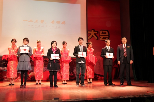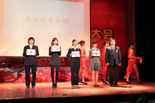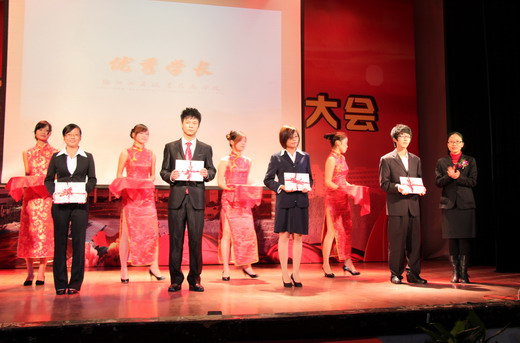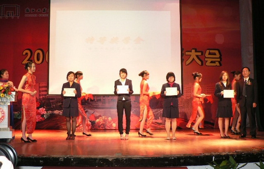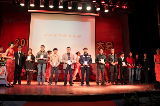 随着优美的音乐旋律和一篇篇精彩的DV片段,2009-2010学年奖学金系列、学生优秀系列、优秀学长、先进团总支学生会和大学生暑期社会实践优秀系列获奖个人和集体纷纷在台上亮相,学校领导分别为他们现场颁发了荣誉证书和奖牌。