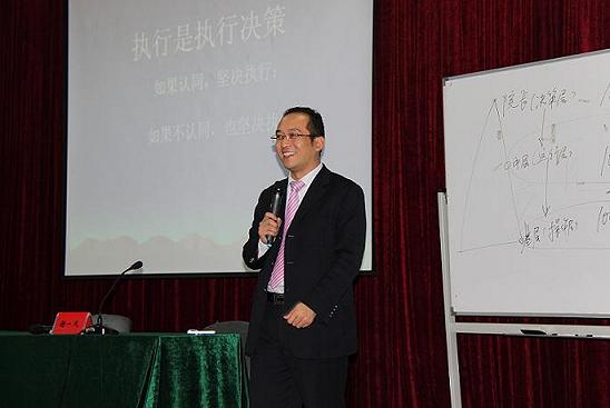 | 11月30日下午,学校邀请香港联成国际教育集团的金牌讲师窦令成来校作主题为“学校西点执行力”的专题培训,学校领 导、中层干部、职能处室全体行政人员、各分院(部、中心)办公室主任、副主任参加了本次培训。培训会由谢一风校长主持。