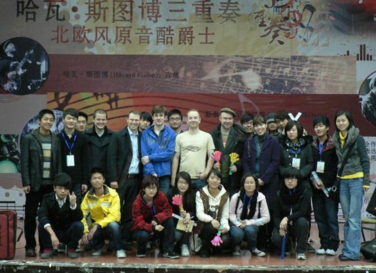 12月12日下午,校团委特邀请了由挪威大使馆推荐的北欧著名爵士乐队——“哈瓦•斯图博三重奏”来我校博学楼二楼报告厅演出。我校是该乐队作为宁波之行的第一站。 在长达四个乐章的表演中,音乐家们运用吉他、架子鼓、键盘三大乐器倾情演绎,表现出了高超的技艺,博得场下观众阵阵喝彩。此次高雅音乐演出,不仅提高了我校师生的艺术欣赏水平,也在全校范围内营造了高雅、欢快、喜庆的校园文化氛围。