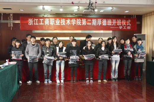 | 校第二期厚德班顺利开班 12月21日中午,由学工部主办的校第二期厚德班开班仪式在小宾馆二楼会议室举行。学校党委书记蔡泽伟、校长谢一风、副校长姚奇富、党委副书记应金萍、纪委书记李振祥、党委委员邱素芬、校长助理徐永春、徐盈群等领导及我校校友狮丹努进出口有限公司总经理兼集团公司副总经理谢超君出席了仪式。本期厚德班以“爱心托起希望,励志改变命运”为主题,旨在从解决学生经济困难的保障性资助向有利于学生成长成才的发展性资助转变。