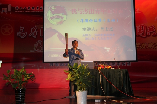 | 为纪念五四运动92周年,弘扬五四精神,表彰先进,树立典型,5月4日下午,学校五四表彰暨“高举团旗跟党走,我与祖国共奋进”大型主题团日活动在博学楼报告厅隆重举行。校党委书记蔡泽伟、校长谢一风、相关部门负责人、各学院党总支书记等出席了本次活动,并为受表彰的集体和个人代表颁奖。活动还邀请到了“全国五一劳动奖章获得者”、“浙江省十大杰出青年”竺士杰先生为我校第十三期厚德讲坛做“我与杰出青年面对面”之形势政策宣讲报告。