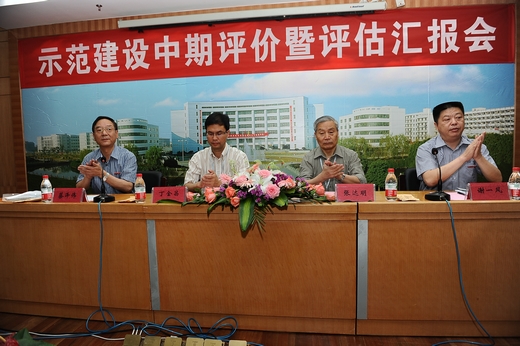 我校校长谢一风作了“两评”工作汇报,他从办学历史与现状、项目建设概况、项目建设成效、思考与展望等四个方面作了详尽的介绍。他说,2009年3月,学校被教育厅、财政厅确认为省级示范院校立项建设单位以来,学校围绕9个一级项目、101个子项目,有计划、分阶段的推进示范院校建设工作。学校成立了省级示范院校项目建设领导小组和项目运行监控小组,设立了项目建设管理办公室和9个一级项目建设组。在建设过程中,我们着重从进度、质量和资金等三个维度,加强了监督与控制,完善了“总部-基地”的办学模式,建立了“点、线、面”结合的校企合作模式,深化了基于“四个结合”的人才培养模式改革,构建了基于工作过程的专业核心课程体系与教学内容,提高了师资队伍的职业教育理论水平和教学能力,加强了实训实习基地内涵建设,提升了人才培养质量,增强了社会服务与辐射引领能力。