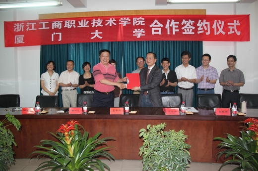 | 5月20日上午,我校与厦门大学在至诚楼三楼会议室签署了《合作意向书》,双方初步达成了合作意向。厦门大学史秋衡教授、博导,我校党委书记蔡泽伟、校长谢一风、纪委书记李振祥以及有关部门负责人参加了签约仪式。史秋衡和谢一风分别代表厦门大学和我校在《合作意向书》上签字。