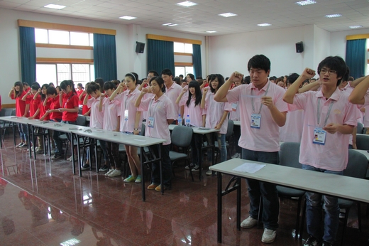 李新华也在会上讲话,他说,浙洽会、消博会是浙江省一次综合性对外经济贸易交流活动,是引进资金、技术、人才、管理等的载体,也是浙江走出国门、走向国际的平台。大会累计吸引了来自100多个国家和地区的十几万外商参会,是展示宁波的最好盛会。本届浙洽会、消博会将于6月8日至11日在会展中心举行,浙江工商职业技术学院将有400多名两会学生青年志愿者将服务于13个部门30多个岗位,承担“两会”80%的翻译、网络维护、客商接待、中英文讲解、文秘、会务、组织、礼仪、检票、咨询、统计、疏导等服务工作。在历次展会的服务工作中,学生服务人员充分发挥了专业特长,以良好的精神风貌、过硬的专业知识协助“两会”组委会完成各项工作,给组委会留下了很好的印象,希望各位同学继续发扬优良作风,再接再厉,在本届两会服务中严格要求自己,遵守服务守则,微笑服务客商;以一流的优质服务和精神状态,展现当代大学生的独特魅力,树立当代大学生的良好形象;牢记行为规范,掌握服务技能,弘扬志愿精神,热情服务,认真工作,为“两会”奉献自己的青春力量。 启动仪式结束后,400多名两会学生青年志愿者还进行了集体宣誓。