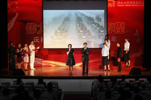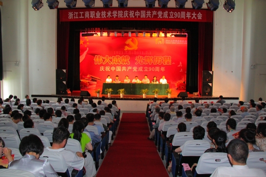 | 6月22日下午,我校隆重举行中国共产党建党90周年庆祝大会暨文艺汇演。学校党委书记蔡泽伟、校长谢一风、副校长姚奇富、党委副书记应金萍、纪委书记李振祥、副校长俞位增、党委委员邱素芬等领导出席会议,全校近600名教职工参加了此次大会。大会由校长谢一风主持。