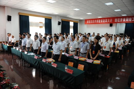 大会在雄壮的《国歌》声中拉开帷幕。我校校长谢一风首先致开幕辞。他代表全校近万名师生员工向莅临今天大会的各位领导、各位来宾表示热烈的欢迎和衷心的感谢!向各位代表致以诚挚的问候!他说,学校升格高职以来,特别是近五年来,在上级党组织的正确领导下,学校党委团结带领全校师生员工,圆满完成了“十一五”的各项改革发展任务,实现了学校的跨越式发展。希望参加本次党代会的各位代表能够不辜负全校师生员工的厚望,珍惜自己的民主权力,认真履行代表的神圣职责,统一思想、同心协力、共谋发展,把这次大会开成一个团结、和谐、奋进的大会!通过这次大会的召开,进一步增强发展意识、竞争意识和创新意识,把握机遇、真抓实干,使学校各项工作不断取得新成绩,再创新辉煌!