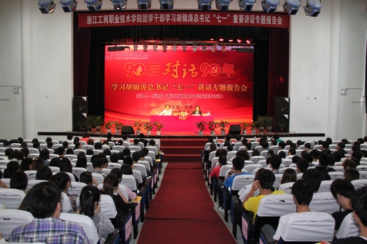 | 10月9日下午,学校“党史进校园——90后对话90年”首场报告会在博学楼报告厅举行。会议邀请了校党委书记蔡泽伟教授就深入学习胡锦涛总书记“七一”讲话精神作专题辅导报告。全校450名团学干部和学生党员聆听了此次报告会。学工部全体成员、各学院党总支书记、副书记、学生管理工作人员等参加了报告会。校党委副书记应金萍主持会议。 报告会在雄壮的国歌声中拉开帷幕。
