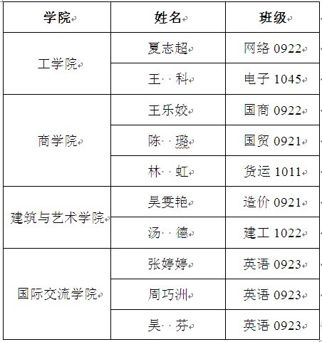 | 由中国残联、国家体育总局主办,浙江省政府承办的中华人民共和国第八届残疾人运动会于2011年10月在我省举行。经网络报名、笔试和面试,最终我校夏志超等十位同学被确定为“八残会”志愿者,其中夏志超、王 科、林虹、汤德、吴芬五位同学还将赴杭为“八残会”田径比赛提供包括检录管理、赛场辅助、器材管理、运动员接待等十余项现场志愿服务。