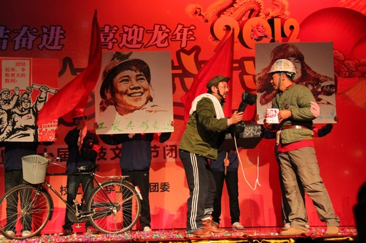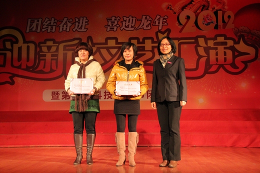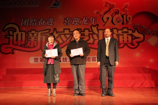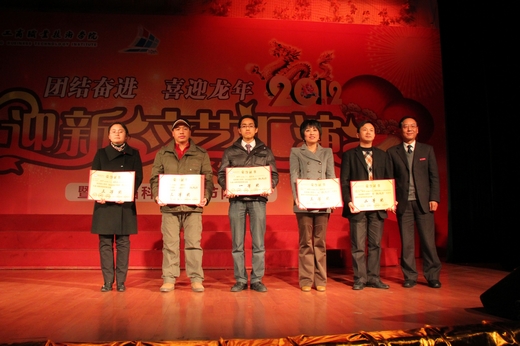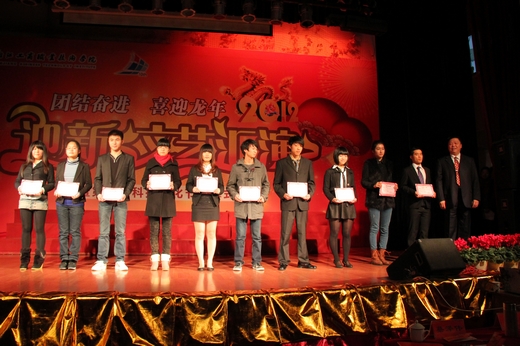 随后,2012年迎新文艺汇演正式拉开帷幕。本次文艺汇演节目丰富多样,精彩纷呈,有激情昂扬的大合唱《在灿烂阳光下》、热情浪漫的舞蹈《山丹丹开花红艳艳》、爆笑全场的小品《流金岁月(年代秀)》等,演员们的精彩表演将晚会推向了一个又一个高潮。最后,国际交流学院分工会江华凤、孔庆宇、永井美帆、Ben等表演的韩日舞蹈《串烧》以出色的表演技巧得到了评委的认可,夺得了一等奖;建筑与艺术学院分工会胡巍、戴艳等表演的小品《流金岁月(年代秀)》和行政分工会汪小燕等表演的歌曲联唱《爱.恒美》荣获二等奖;商学院分工会、公共课教学部分工会表演的节目分别荣获三等奖。