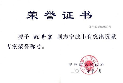 近日,根据《宁波市人才奖励办法》(甬党发[2010]111号)文件,经推荐申报、评审会评选及综合考察,我校姚奇富教授被宁波市委、市政府授予“2011年度宁波市有突出贡献专家奖”荣誉,并获得了10万元的奖励。 为深入贯彻实施“人才强市”战略,进一步激发广大专业技术人员的积极性和创造性,宁波市委、市政府日前表彰了30名获得“2011年度宁波市有突出贡献专家奖”荣誉的专家,希望他们发挥模范表率作用,在社会主义现代化建设中建功立业。