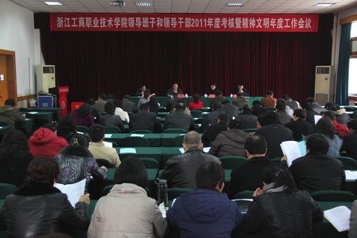 | 2月22日下午,学校在至诚楼一楼报告厅举行了领导班子和领导干部2011年度考核暨精神文明年度工作大会。省商业集团有限公司组织人事部副部长黄胜泉、资产业务部副部长孙国勇、组织人事部部长助理童心等领导莅临指导。学校党政领导班子成员、中层干部、近三年退下来的校级领导、副高以上职称的教师、各民主党派负责人、七届教代会主席团成员等140多人参加了会议。会议由党委书记蔡泽伟主持。
