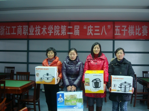 | 为欢度一年一度的“三八”妇女节,丰富学校女教工的业余文化生活,3月7日下午,学校工会、妇委会、公共课教学部联合举办了“庆三八”第二届女教工五子棋比赛。来自各分工会(妇委会)的60余位女教工,经过2小时的激烈角逐决出胜负。其中:黄建设获得一等奖;郑文新、戴玲芸、王亚琴获二等奖;苏萍、李茗芬、董艳、毛妍群获三等奖。