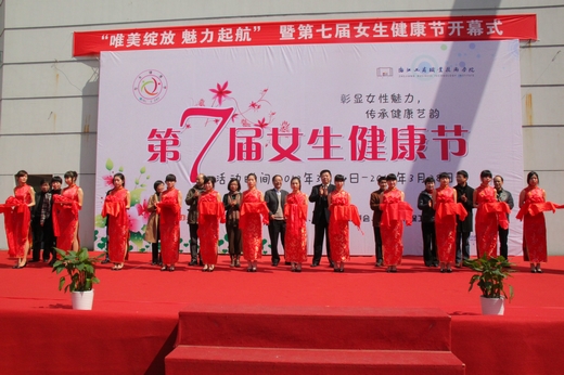 | 3月14日下午,由校团委主办、商学院承办的“唯美绽放 魅力起航”第七届女生健康节开幕式在学校小绿色小广场举行。党委书记蔡泽伟、校长谢一风、党委副书记应金萍、纪委书记李振祥、副校长俞位增、党委委员邱素芬、校长助理徐盈群等校领导出席了开幕式。