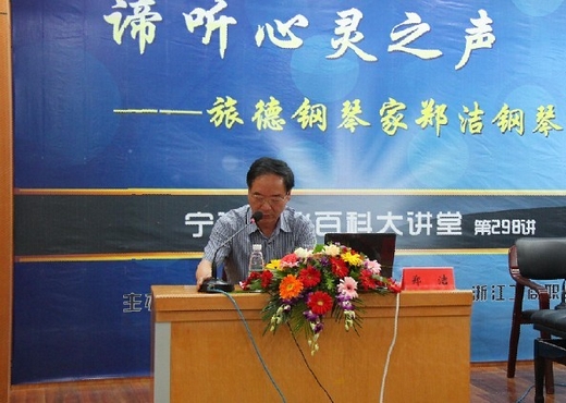 | 5月7日晚上,我校图书馆报告厅内座无虚席,青年钢琴家郑洁博士应邀来我校为我校师生作了《谛听心灵之声》讲座,并为我校师生进行了激情的现场钢琴演奏,给大家带来了一场听觉盛宴。宁波大学原党委副书记、宁波文化百科大讲堂执行主任邢学亮,宁波大学法学院原党委书记张宏洪、宁波大学外语学院原党委书记盛育冬及我校党委书记蔡泽伟等领导出席了本次活动,我校有关职能部门领导、各分院相关师生共300多人参加了活动。