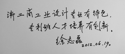徐志磊此次来宁波进企业、进校园,紧密围绕宁波制造业与工业设计发展进行指导。他在我校两天内,访问了两家工业设计专业校外实训基地,真汉子电器公司和宁波市科创工业设计公司,对我校产学结合、校外实习实训基地建设给予了很高的评价。期间,他参观了我校校内工业设计实训室和学生工作室,与工业设计专业的师生们进行了座谈,并对我校学生作品进行指导,对我校工业设计专业未来发展提出展望,还为我校题词“浙工商工业设计专业有特色,专利班人才培养有创新”。