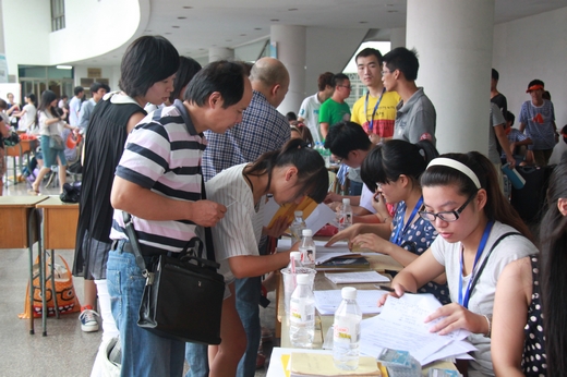 | 9月8日,我校迎来了迎来了一张张年轻的笑脸,来自全国各地3000余名2012级新生在这天报到了。沉寂多时的校园,就像火热的天气一般,一下子热闹起来。早上8点不到,校园内,送行的私家车就排起了长龙。