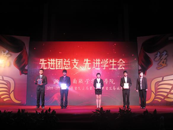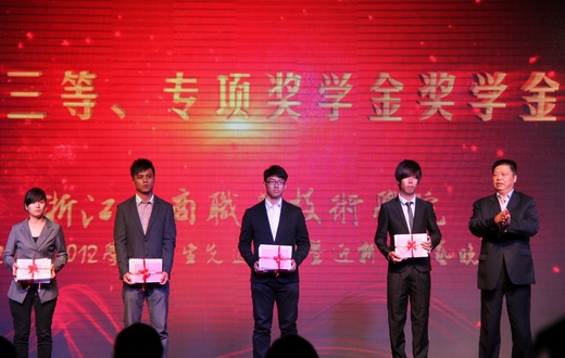 随着优美的音乐旋律和一篇篇精彩的DV片段,2011-2012学年奖学金系列特等奖、一二三等、专项奖学金、学生优秀系列、先进班级、先进团总支学生会和大学生暑期社会实践优秀系列获奖个人和集体纷纷在台上亮相,学校领导分别为他们颁发了荣誉证书和奖牌。