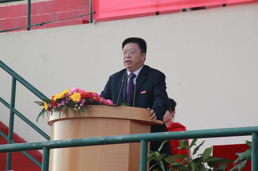 10月31日下午,学校举行第十一届田径运动会开幕式,谢一风致开幕词。他说举办一年一届的田径运动会,是我校推进素质教育,响应教育部提出的“每天锻炼一小时,健康工作50年,幸福生活一辈子”的口号,提高师生体质健康水平的一项重要举措,是我校校园文化生活中的一场盛宴。每年一届的田径运动会作为我校师生广泛热衷的传统校园体育活动,它既会给我们呈现精彩纷呈的比赛场面,让大家体验体育的快乐,又能够激发大家参与体育活动的热情。在本次运动会期间,希望全体运动员,在紧张激烈的赛场上,以饱满的激情,昂扬的斗志,拼搏的精神,赛出友谊,赛出成绩,赛出水平,赛出新风尚!同时能认真遵守赛场纪律,尊重裁判,尊重对手,发扬互助友爱,胜不骄、败不馁的体育道德风尚;希望教练员、裁判员和工作人员,发扬无私奉献的精神,严格按规程操作,以“公平、公正、文明”为宗旨,以我们细致的工作为运动员做好服务,维护赛场纪律,创造和谐比赛环境,保证赛场安全。希望全校师生热情参与本届运动会,为运动员加油呐喊,让赛场成为师生情感交流的一个场所,让赛场成为别样的开放教室,让团结友爱、顽强拼搏的精神在工商的校园里发扬光大!让我们共同把本届田径运动会开成一个安全、文明、团结、进取的盛会。