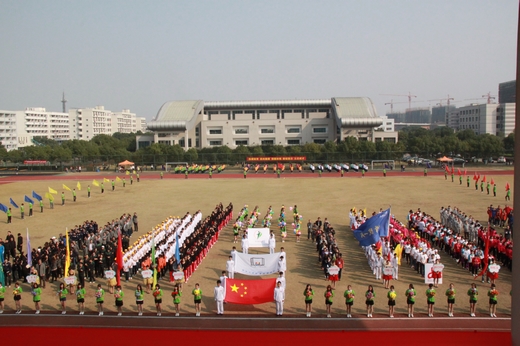 | 10月31日-11月2日,为期两天半的校第十一届田径运动会在田径运动场上隆重举行。党委书记蔡泽伟、校长谢一风、党委副书记应金萍、纪委书记李振祥、党委委员邱素芬等校领导出席了此次活动。