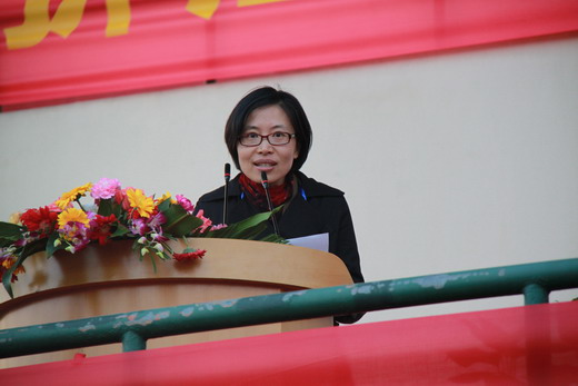 应金萍宣读本届运动会各奖项名单,并宣布第十一届田径运动会顺利闭幕。