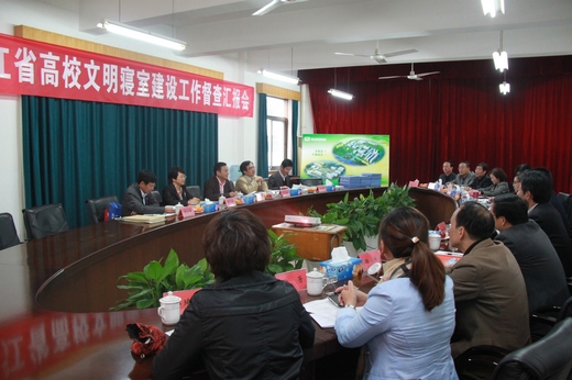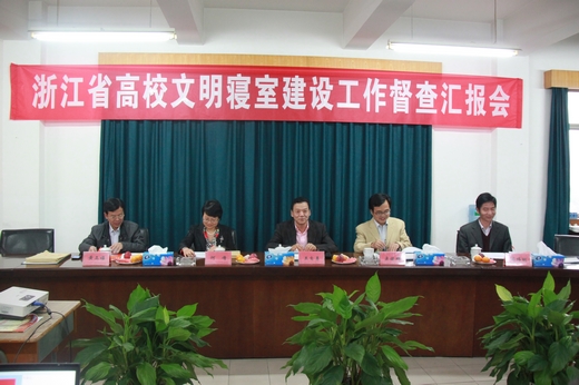 | 11月8日下午,浙江省教育厅高校文明寝室建设督查组一行5人来我校就文明寝室建设工作开展专项检查指导。以浙江农林大学副校长王自勇任组长,浙江省教育厅宣教处副处长吴振辉、宁波市教育局宣传与德育处处长何倩、杭州电子科技大学总务处长冯伟明、浙江水利水电专科学校党委学工部部长黄正福为成员的督导组,通过听取汇报、查看台帐、师生调查、实地检查等方式,对我校文明寝室建设工作进行了一次全面检查。学校党委书记蔡泽伟、校长谢一风、党委副书记应金萍、副校长徐永春、党委委员邱素芬等校领导及相关部门的负责人参加了此次汇报会。汇报会由应金萍主持。