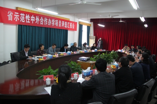 | 11月20日,省示范性中外合作办学项目评选专家组一行7人莅临我校开展评选工作。这是省高职高专院校首次开展省示范性中外合作办学项目评选活动。本次活动的专家组组长由浙江科技学院副院长吕进担任,省教育厅外事处处长舒培冬和调研员吴伯刚作为专家组成员一同来我校检查和指导工作。