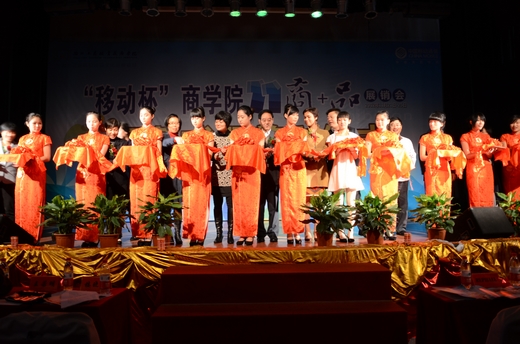 最后,主席台领导和嘉宾为商品展销会剪彩。伴随随着喜庆而热闹的礼炮声,蔡泽伟宣布为期五天的“移动杯”第十一届商品展销会正式拉开帷幕。
