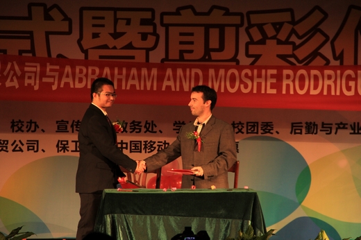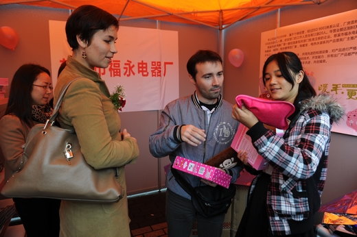 随后,来自浙江缙云飞燕贸易有限公司的副总经理、我校商学院2008级国际商务专业的优秀毕业生周挺与来自法国ABRAHAM AND MOSHE RODRIGUEZ公司的代表Rephael先生进行了展销会订单签约仪式。这也成为了商品展销会举办以来单日成交额最大的一笔订单,总金额达40320美元。