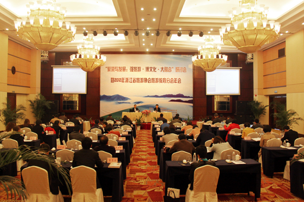| 11月23日,浙江省旅游协会旅游教育分会年会暨“繁荣与发展:强旅游·博文化·大融合”主题研讨会在宁海举行,共有来自30多个单位的60余名代表参加了此次会议。我校为会议承办方之一,又是浙江省旅游协会旅游教育分会副会长单位。我校校长谢一风、副校长姚奇富及相关部门负责人等作为代表出席了会议。