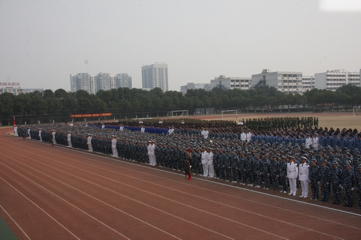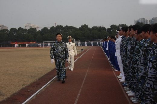 | 12月9日,我校2012级学生军训闭训式在体育场隆重举行。承训部队首长东海舰队司令部军务处处长王斌、主任秦大伟、参谋王晓鑫,宁波市教育局学校安全与体卫艺处处长蒋和法、宁波市海曙区人武部政委张硕,以及学校校长谢一风、党委副书记应金萍、纪委书记李振祥、副校长徐永春、党委委员邱素芬、校长助理徐盈群及校军训工作领导小组成员出席了闭训式并观看了军训汇报表演。全体教官、辅导员、各班主任和2012级全体学生参加了此次典礼。