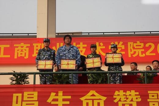 我校今年共有24名学生光荣入伍,其中男生20名,女生4名,4名女生也是海曙区唯一的4名女兵。在军训闭训式上举行了简短而庄重的新兵欢送仪式。张硕给每位入伍学生颁发入伍通知书,各学院党总支书记分别为入伍同学佩带光荣花,应金萍代表学校向入伍学生赠送纪念品。