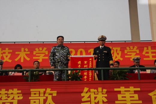 典礼上,谢一风代表我校向东海舰队司令部军务处赠送锦旗,感谢他们对我校2012级学生军训工作的大力支持。