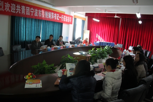 | 12月19日上午,共青团宁波市委书记鲍娴萍、办公室主任孙开用、宣传部副部长林体等一行6人来我校,对我校的共青团工作进行了2012年度工作考核和指导。我校党委副书记应金萍及相关部门负责人出席了本次考核交流会议。