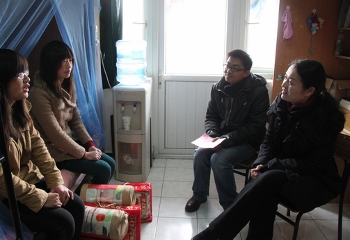 | 1月9日,由共青团宁波市委主办的“冬日暖阳,亲青相伴”送温暖行动走进我校,为我校贫困学子、外省学生送上了新春的祝福和冬日的温暖。 当天上午,宁波团市委副书记方晴、学校部部长任乐波一行在我校相关部门负责人的陪同下,来到我校学生公寓楼看望和慰问我校学生。每到一处,他们都和学生亲切交谈,并送上年节物品,送上新年的祝福。方晴还亲切询问了学生的家庭状况等生活上的细节,询问了一线学生对团工作的认识和需求,询问了学生们对十八大的认识和看法。学生们非常感激团市委和校团委领导的关心,表示一定会好好学习,不辜负学校、社会对自己的期望,以更好的成绩回报学校、回报社会的关爱。  |