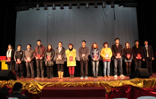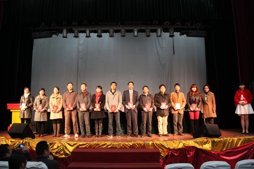 最后,姚奇富宣读了2012年度学校先进集体、优秀干部、优秀教师和先进工作者、优秀教工小家、优秀工会工作者和宁波市教育系统第十二届事业家庭兼顾型先进个人等先进集体和先进个人获得者名单,通过表彰以进一步弘扬广大教师和教育工作者爱岗敬业、无私奉献的精神。主席台领导还现场为获奖集体和个人颁奖。