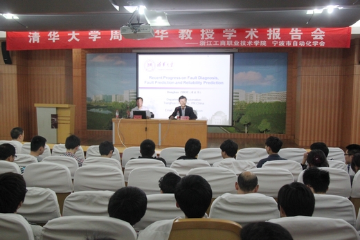 | 4月17日下午,清华大学自动化系主任周东华教授学术报告会在图书馆报告厅举行。学校副校长徐永春及相关部门领导出席了本次活动,全校200多名师生及部分宁波兄弟院校教师参加了本次报告会。 徐永春首先致开幕词,他代表学校对周东华教授来我校做学术报告表示欢迎,并向参加报告会的教师和同学介绍了周东华教授的基本情况,希望大家能珍惜这次机会,认真聆听。