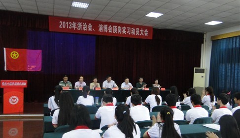 启动仪式结束后,商学院200多名“两会”学生青年志愿者还进行了集体宣誓。 我校从2002年开始就与展会组委会紧密合作,先后承担了中国食博会、中国旅游投资洽谈会、宁波国际服装节、中国国际数字化印刷展等大型国际性展会服务,至今累计有近5000名学生参加展会服务。今年的第十五届浙江投资贸易洽谈会、第十二届中国国际日用消费品博览会将于6月8日至11日在会展中心举行,我校将有400多名学生参加服务,从事于国外客商接待、网络维护、办证、组织、礼仪、检票、咨询、统计、疏导等服务工作。 |