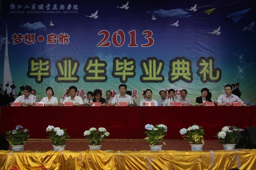 6月6日上午,学校举行2013届优秀毕业生毕业典礼。校长谢一风、副校长姚奇富、党委副书记应金萍、纪委书记李振祥、副校长徐永春、徐盈群、党委委员邱素芬等校领导和相关职能部门负责人及各学院相关领导出席了典礼。