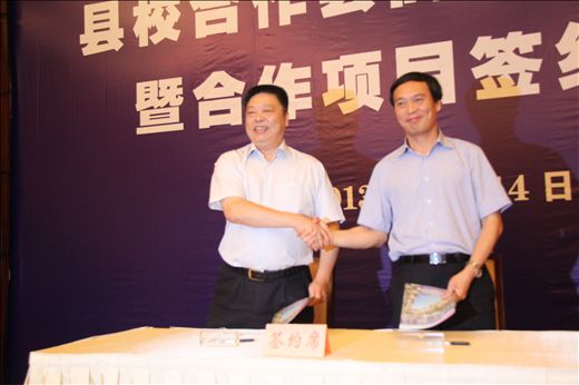 | 6月14日,我校和宁海县人民政府的县校合作会商委员会会议暨合作项目签约仪式在宁海县隆重举行。浙江省商业集团有限公司副总裁蔡玉林、宁波市教育局副局长胡赤弟、宁海县县委书记卞吉安、县长褚银良,以及我校党委书记蔡泽伟、校长谢一风等相关领导出席本次会议。会议由宁海县县委常委、组织部部长林惠明主持。 经过县校双方前期磋商,双方代表共同在会上签署了《建立县校紧密合作机制备忘录》、《合作共建宁海现代服务业发展研究院协议书》、《联合建立徐霞客旅游学院协议书》、《共建宁海高技能人才培训学院协议书》。