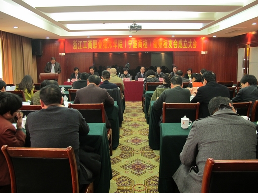 | 12月7日,学校衢州校友会成立仪式在衢州市举行。校党委书记蔡泽伟出席了仪式,学校相关部门负责人以及我校衢州历届校友代表50余人参加了大会。 会议由衢州校友会筹备组成关升主持;筹备组长郑国强作衢州校友会筹备工作报告;筹备组郑德胜宣读《浙江工商职业技术学院衢州校友会章程》;筹备组副组长陈德华宣读理事候选人名单及简介;并作理事成员推荐情况说明。