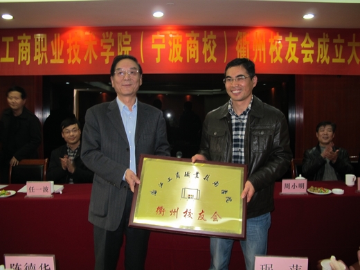 琚萍、郑德胜、郑婷婷三位校友分别代表80、90、00年代时期的校友也作了简要的发言。他们饱含深情地回忆起在母校的学习时光,怀念之情溢于言表,并对母校的发展壮大表达由衷的欣喜。接着,蔡泽伟代表学校与衢州校友会会长周小明举行了授牌仪式。 最后,蔡泽伟在会上发表讲话。他对衢州校友会的成立表示热烈的祝贺,并介绍了近些年学校在人才培养、社会服务等方面所取得的成就和未来的发展战略。他强调,学校之所以取得今天的成绩和地位,除了全体教职员工的努力,更重要的和校友们在各行各业的贡献是分不开的,鼓励校友们继续努力为国家和社会多做贡献。同时指出,校友会是各位校友和母校联系的桥梁,是校友们相互交流信息和互相帮助的平台,希望各位校友给学弟学妹们树立一个榜样,给他们提供一面学习的镜子;希望大家常回母校看看,多为母校的发展出谋划策;也希望衢州校友今后继续广泛联系校友,积极宣传校友,提高校友的影响力,更好地为校友服务。