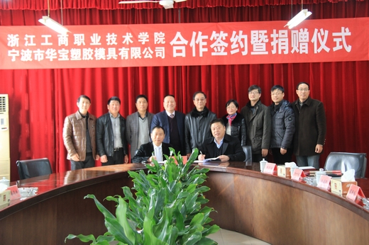 随后,谢一风与胡仁宝又分别代表学校和宁波市华宝塑胶模具有限公司签署了项目合作协议书。本项合作主要为充分发挥高职教育服务行业、企业的功能,有效提升校企双方的技术开发能力,有利于校企双方共同建设和开发“现代化、规范化、信息化”精密模具产学研项目,为行业、企业培养更多高技能人才,也为学生实习、实训、就业提供更大空间。