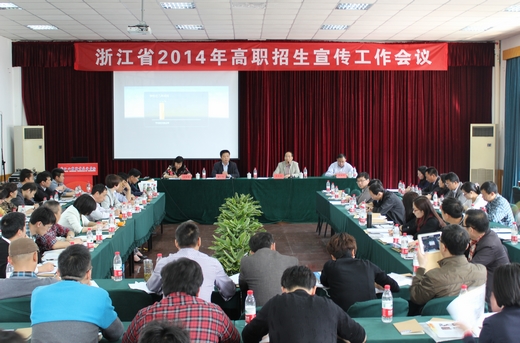 | 4月29日,由浙江省高教学会招生委员会高职分会主办、我校承办的浙江省2014年高职招生宣传工作会议在我校行政楼一楼会议室顺利举行。我校校长谢一风、浙江省考试院科研宣传处处长鲍夏超、浙江经贸职业技术学院纪委书记蒋丽君、浙江省高职招生分会秘书长张瑶祥出席会议,全省高职院校招生工作分管领导及部门负责人,浙江电视台教育科技频道、浙江日报、浙江在线、浙江教育报等新闻媒体,共100余名代表参加了会议,会议由蒋丽君主持。