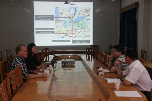 6月18日,美国托来多大学社区学院国际化联盟执行主任Dr. Ron Opp教授和社区学院国际化联盟中国合作处主任郭爱戈博士访问我校,我校姚奇富校长热情接待了各位来宾,并与他们进行了交流和洽谈。 姚奇富首先对Opp教授一行的到访表示热烈的欢迎,并就我校与社区学院的合作提出指导性建议。Ron Opp教授介绍了国际化联盟在美国的发展情况,并有兴趣吸纳中国优秀高职院校加入国际化联盟,共同开展国际交流与合作,实现资源共享,共同发展。郭爱戈博士介绍了国际化联盟在中国的发展情况,希望我校早日加入联盟,并就学生交流、学分认证、师资培养和外教聘请等方面开展合作进行洽谈。双方还就签署合作意向书和具体项目如何开展进一步合作进行了深入的交流。
