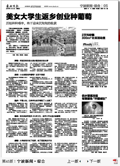 《东南商报》7月3日《美女大学生返乡创业种葡萄》 http://daily.cnnb.com.cn/dnsb/html/2014-07/03/content_770223.htm?div=-1
