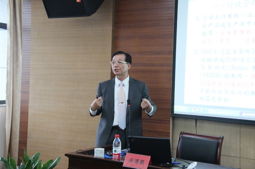 | 8月1日下午,在台湾龙华科技大学校长葛自祥、副校长林如贞陪同下,台湾著名学者、台湾前教育部部长、台湾师范教育学会理事长、台湾教育大学系统总校长、龙华科技大学顾问吴清基教授一行访问我校,并在中和楼报告厅作了主题为《组织行政管理的新视野—从紫牛到蓝海》学术报告。学校党委书记蔡泽伟、校长姚奇富和相关校领导接待了来宾。我校全体校领导、中层干部、相关职能部门负责人及教师近100人出席了报告会。报告会由党委书记蔡泽伟主持。